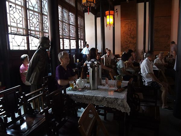 評彈博物館在平江路岔出的一條巷子裡,門前有銅雕像,車伕、說書人與接待者,說明著往昔評彈作為娛樂活動的盛況。說「往昔」…那「而今」又是怎生模樣?我卻待要親自見識一番,想來應與那耦園裡設的評彈表演有極大的不同吧?雖然尚未見識,但光想到耦園桌上的價目表,隨便點首「茉莉花」之類的歌曲就要二三十元的高價,與如今我們要看的兩小時一場才四元的表演,想必差上許多吧?